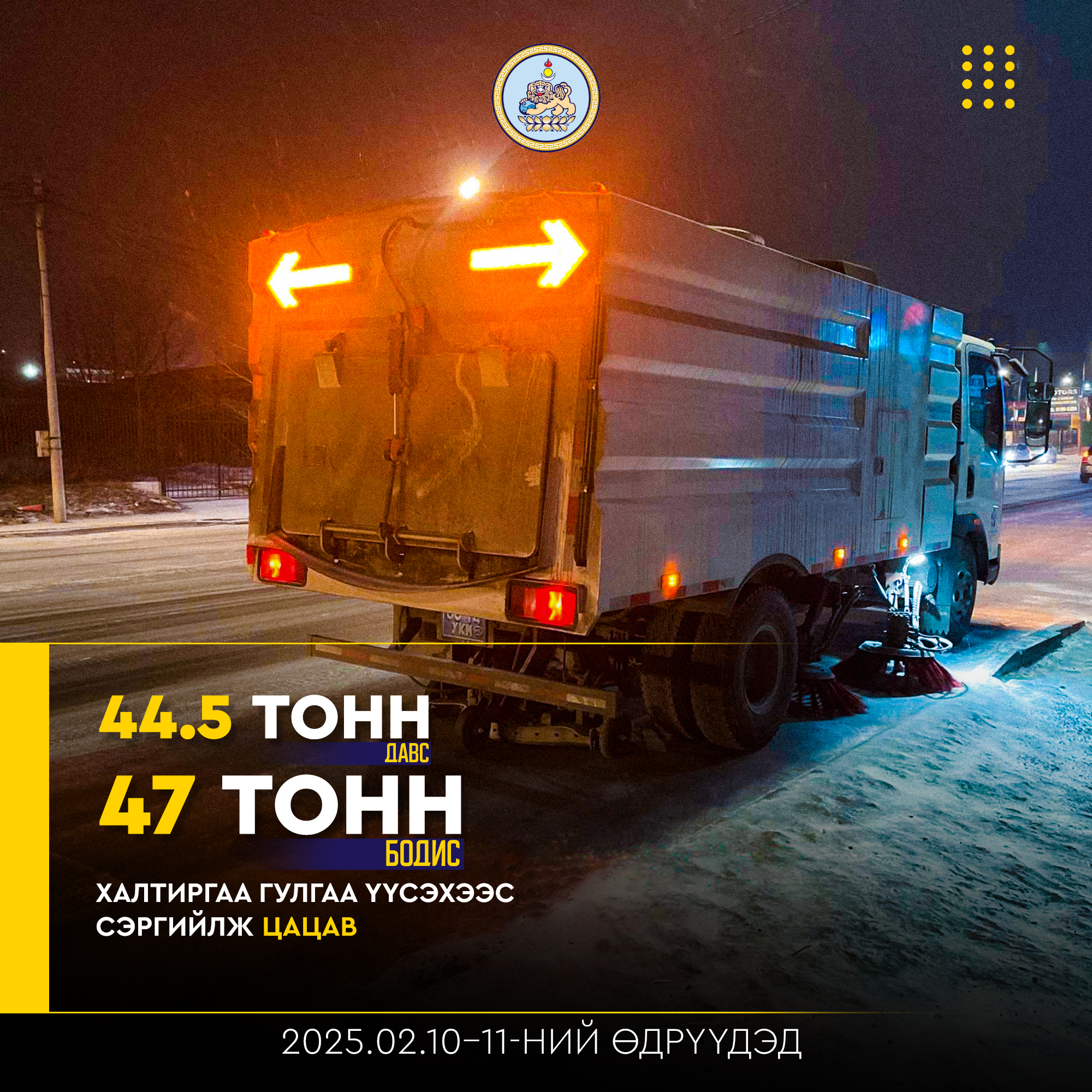 2025-2026 оны өвөлжилтийн бэлтгэл ажлын хүрээнд 9518 тонн давс, 9590 тонн бодис нөөцөлж байна