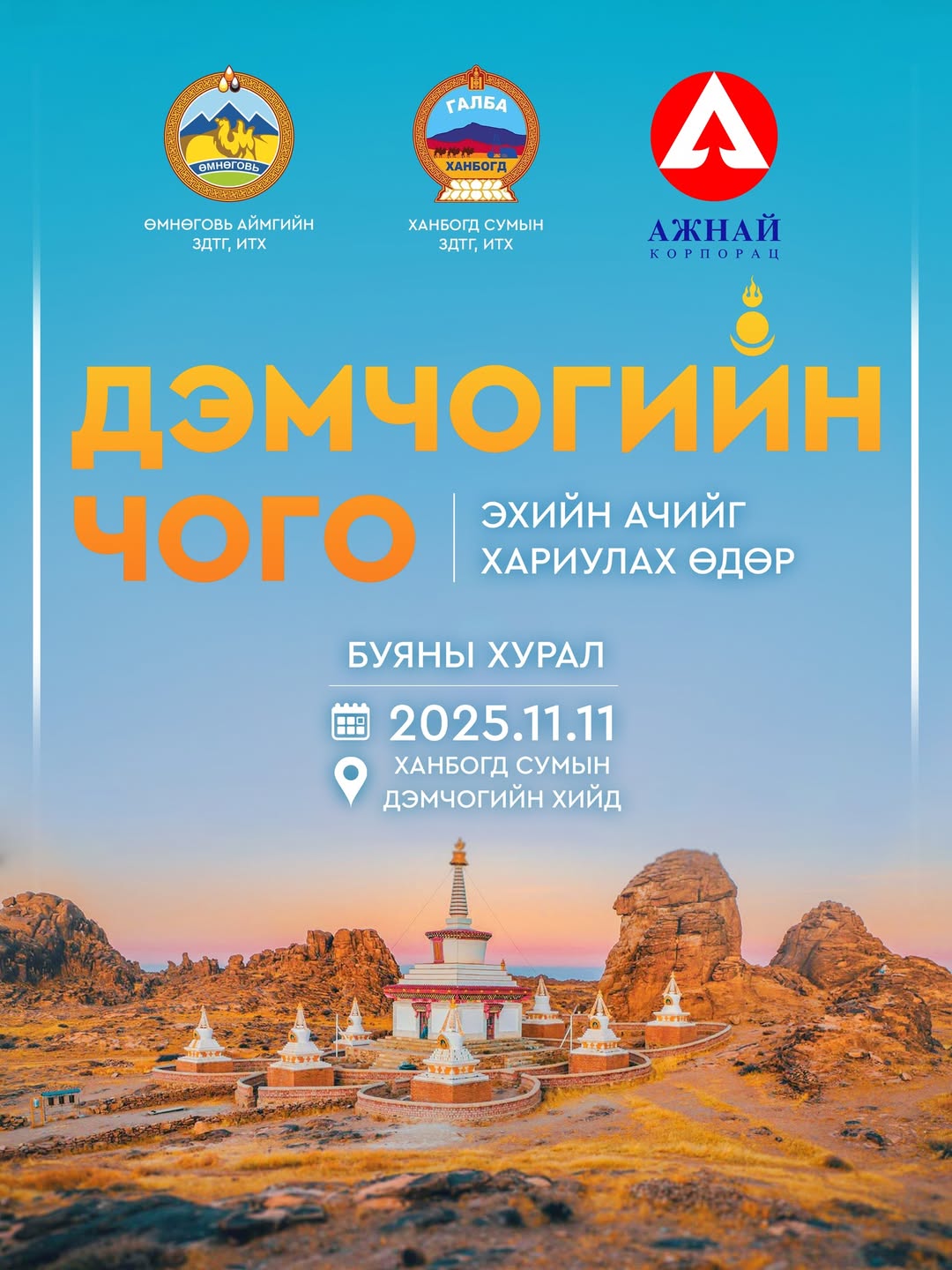 “ДЭМЧОГИЙН ЧОГО” СОЁЛЫН АРГА ХЭМЖЭЭ ӨМНӨГОВЬ АЙМГИЙН ХАНБОГД СУМАНД ЗОХИОН БАЙГУУЛАГДАНА